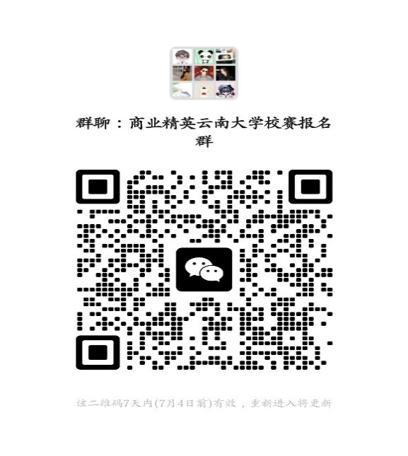 (一)报名时间:2022年7月1日截止,同学们可以扫描下方的二维码加入我校2023年全国高校商业精英挑战赛微信群,在群内接收赛事的相关通知及进行报名信息登记。