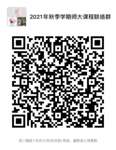 请选课学生于2021年7月23日前加入2021年秋季学期师大课程联络群,后续相关通知将通过微信群发布,进入群后请更改备注名:学院+学号+姓名。入群二维码如下:
