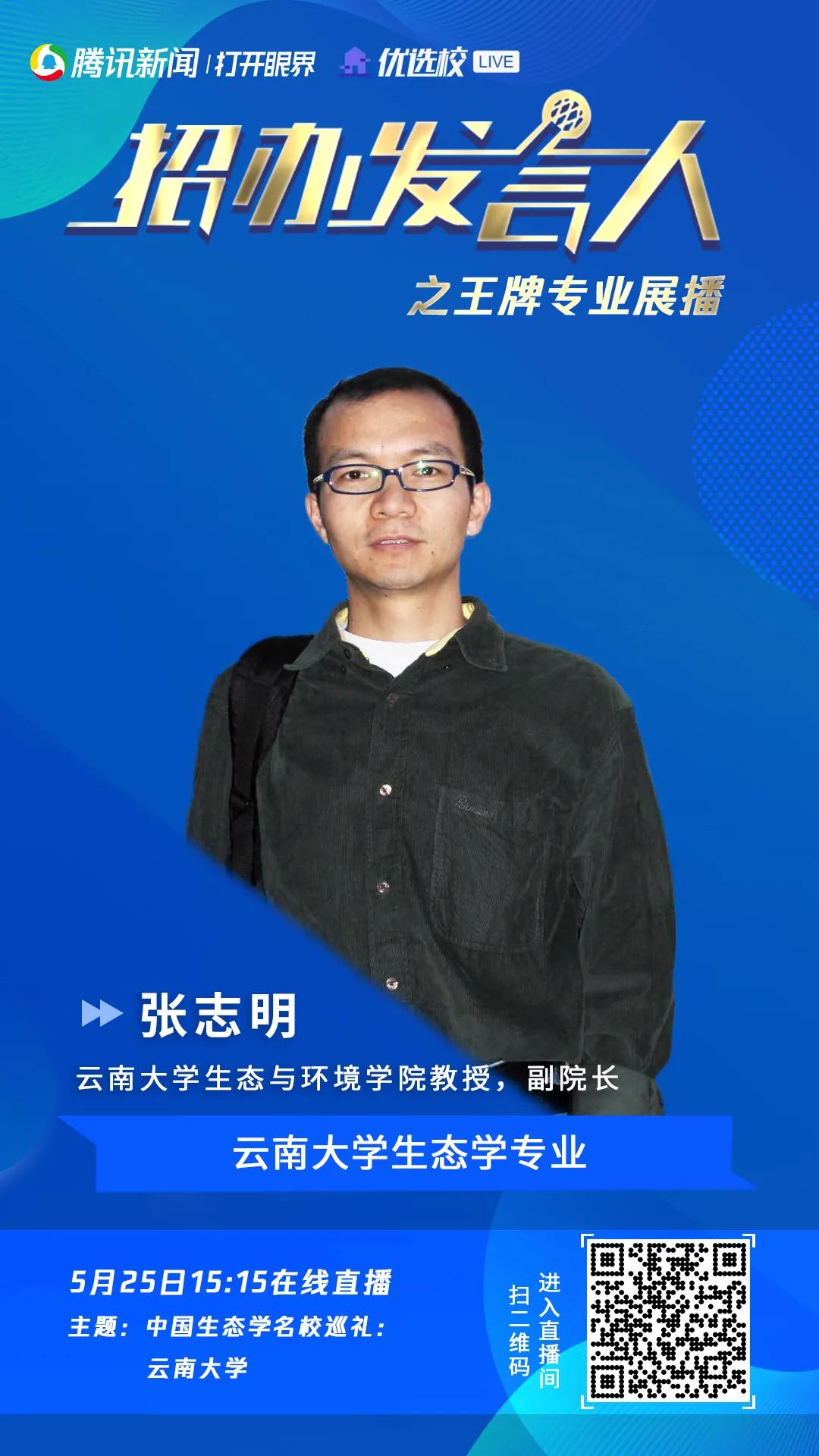 5月25日11:00民族与社会学学院人类学系主任王越平教授、5月25日15:15生态与环境学院副院长张志明教授在线直播,为你详细讲解云南大学两大一流学科。