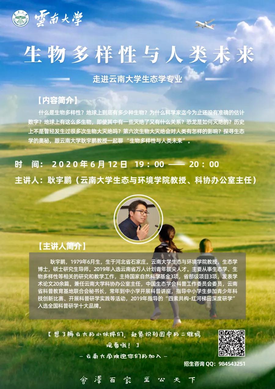 “生物多样性与人类未来”。什么是生物多样性?地球上到底有多少种生物?为什么科学家迄今为止还没有准确的估计数字?地球上有这么多生物,即使其中有一些灭绝了又有什么关系?恐龙是如何灭绝的?历史上不是曾经发生过很多次生物大灭绝吗?第六次生物大灭绝会对人类有怎样的影响?探寻生态学的奥秘,跟云南大学耿宇鹏一起聊“生物多样性与人类未来”。