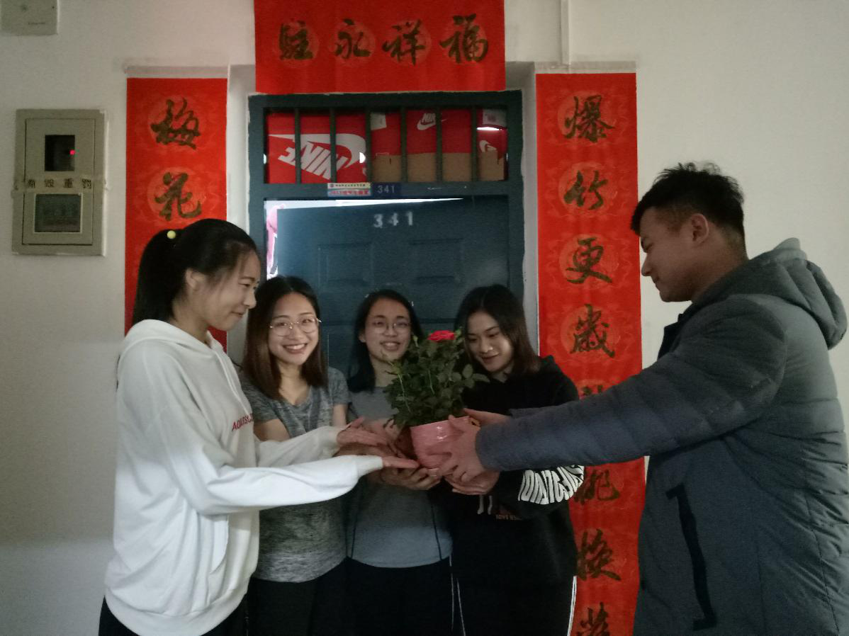 此次活动包括赠送盆栽以及明信片,由男生志愿者负责派送礼物,2016级女生悉数到场,活动历时一个多小时。为了这点小小的惊喜,虽然他们绞尽脑汁,但当女生们笑靥如花的那一刻,他们忘却了所有的疲惫。
