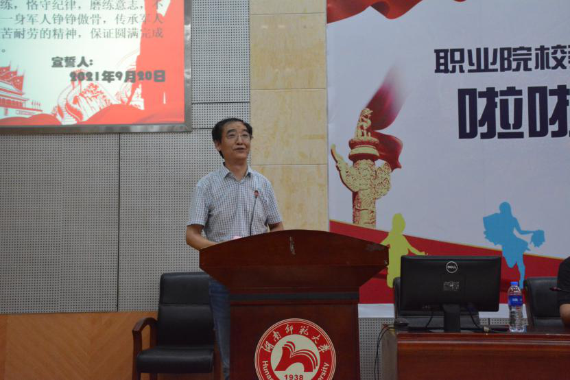 欧阳宝奕作为教官代表对参加军训的同学提出了服从指挥、严格训练、团结协调、严于律己、注重安全五个要求,并希望同学们为自己的大学生活奏响激越昂扬的乐章。