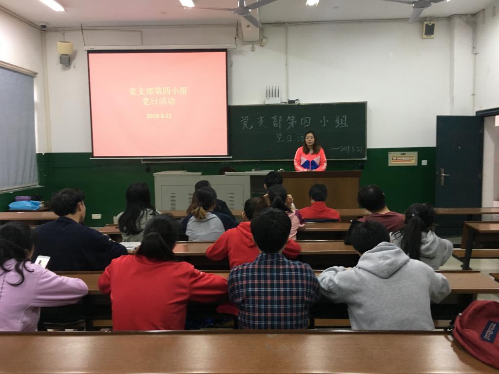 (通讯员 郭奕轩 彭莹)3月21日中午12点,体育学院第三党支部第四小组于202教室展开了以“忆初心,明职责,当先锋”为主题的党日活动。活动伊始,组长王慧介绍了本次学习的目的:通过主题党日活动的开展充分认识和了解“什么是初心”、端正入党动机、了解党员的具体职责、“三心四能”和“大学生党员如何贯彻落实党章争做时代先锋”,提升党小组成员的思想层次,促进为人民服务的党的宗旨的传播。