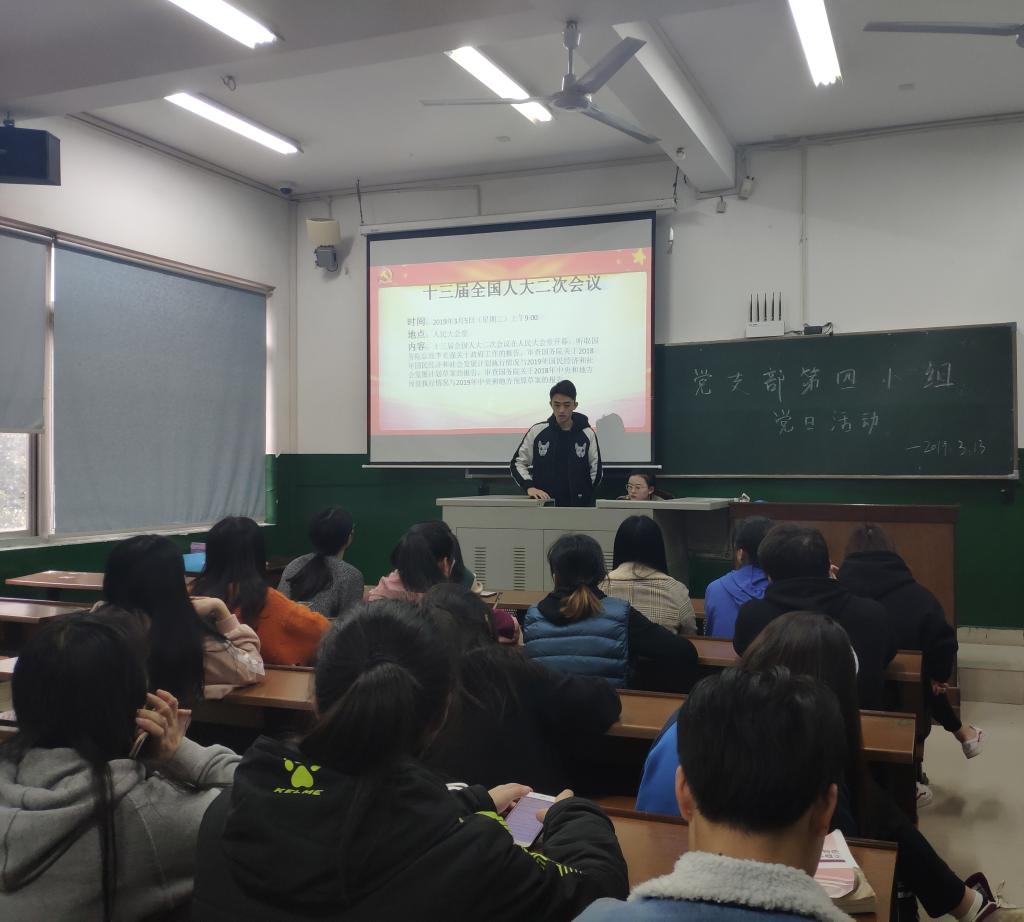 (通讯员 周利群 周慧)3月13日中午,为了让第四小组的组员们了解当下的政治形势,关注政治去向,提高政治素养;第三党支部第四小组在体育教学楼202教室召开了以“第三届全国人大二次会议”为主题的党日活动。