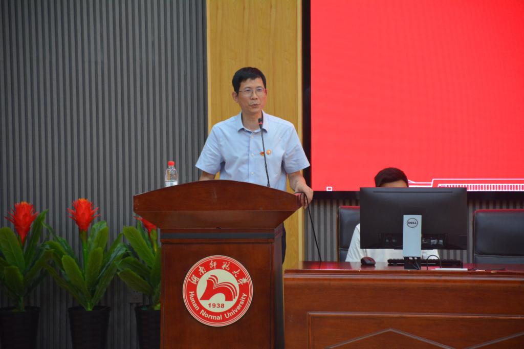 毕业生党员代表瞿友福发言,他表示,从今天起将带着老师们的叮咛和祝福,带上最初的梦想,踏上新的征程。他表示,聚是一团火,散是满天星,感恩在师大的每一段相遇,感恩师长,感恩同学,感恩父母,不论走到哪里,都会秉承“仁爱精勤”的校训,恪守“厚载博学,行健自强”的院训,做一名优秀的师大人。