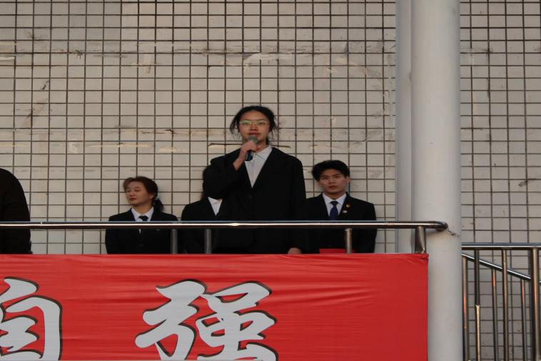 来自24级运动训练专业的曹家溢作国旗下讲话,她以《习惯养德行,端正细节筑人生高远》为题,强调成功由习惯和细节汇聚而成,习惯和细节紧密相连,良好的习惯体现于细节,细节积累成就习惯。最后呼吁同学们从小事、现在做起,完善自我,拥抱成功。