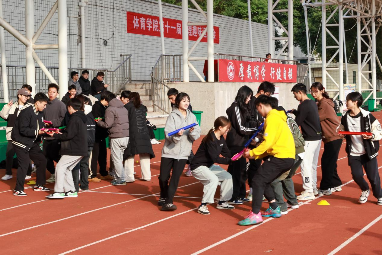 (通讯员:吴爽 蒋晓晨)为提高学生心理健康素质,促进同学们的身心发展,增强团队合作意识和沟通能力,丰富课余生活,帮助同学们释放压力,调整心态,提升自我认知和社会适应能力。11月23日上午,我院于田径场举行第十一届心理趣味运动会,此次运动会以“心灵律动,趣味同行”为主题。体育学院党委副书记李皓、学工办主任夏禹、团委书记王静、学工办副主任李丽、2022级辅导员陈玲和李羽鑫,2023级辅导员梁一然和伍艾、2024级辅导员孔祥蕊和张宇桁出席本次趣味运动会,各参赛队伍参加此次活动,开幕式由胡子怡、彭程主持。裁判员代表巫剑恒和运动员代表和诗博宣誓。