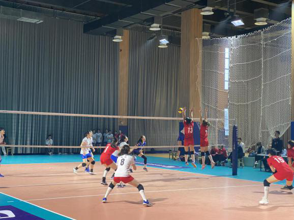 第三、四场小组赛,队员们在八一小学迎战北区劲旅北航女排和南区亚军复旦女排,场上每名队员都敢打敢拼,坚持跑动和死抓拦网,一直紧咬比分,但无奈对方在个人技术和整体拦防上略胜一筹,虽然最后没能拿下胜利,但是也为最后一场小组赛奠定了基础和增强了信心。最后一场小组赛,师大女排迎战老对手哈尔滨工程大学女排,两队曾在2018-2019年总决赛的最后一场比赛相遇,师大女排苦战五局,遗憾不敌对手;所以赛前大家摩拳擦掌,积极准备,都想挽回一城。比赛中师大女排坚持自己的打法,根据对方阵容的变化做出相应的调整,双方都不屈不挠,进攻保护都做得十分到位,在两边体力都有所下降的情况下,队长徐柳和主攻杜琼顶住压力,越战越勇,在分别斩获30分和38分的高分下,两队鏖战五局,最后在决胜局中相信自己,稳扎稳打,最终取得本场比赛的胜利,小组顺利出线。