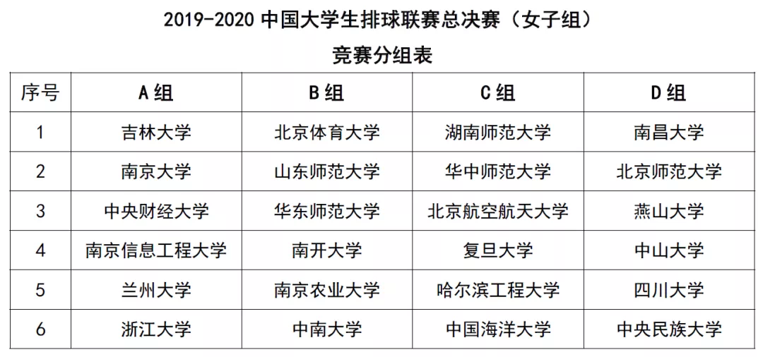 本次参赛的代表队是来自南北区分区赛前12名的的24支队伍,根据2019-2020年分区赛的最终名次,以蛇形排位分成了4个小组,先进行组内单循环,再进行交叉,最终决出全部24个名次。湖南师大女排与同赛区的华中师范大学、复旦大学,以及来自北方赛区的北京航空航天大学、哈尔滨工程大学、中国海洋大学落位C组。