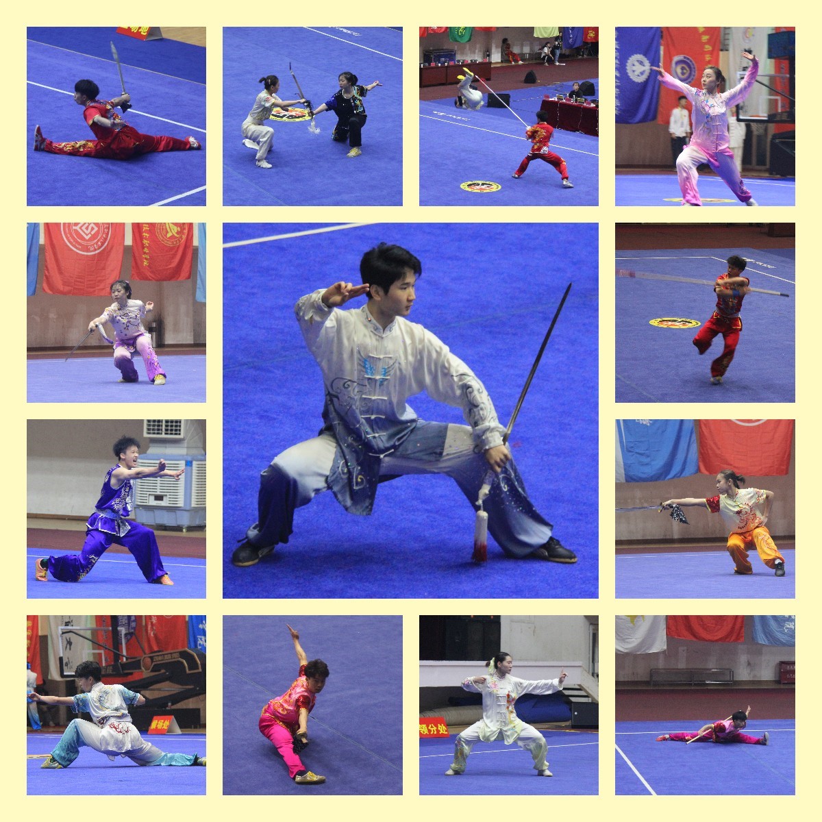 此次比赛,分为大学男子组和女子组、学院男子组和女子组、高职专科男子组和女子组、阳光男子组和女子组,参赛项目包括拳术类、短器械类、长器械类、传统拳术类、传统器械类、对练类、集体类7个项目。全省各地共计38支代表队、近400名运动员参加比赛。我校派出11名武术队员,在领队体育学院党委副书记李波,教练雷军蓉、杨健男老师的带领下,经过三天的激烈角逐,不畏强手,奋勇争先,取得了14金18银4铜,大学组团体总分第一名的优异成绩,不仅展现了较高的竞技水平和精神风貌,更展现出师大学子的夺人风采,续写了武术与民族传统体育新的篇章!