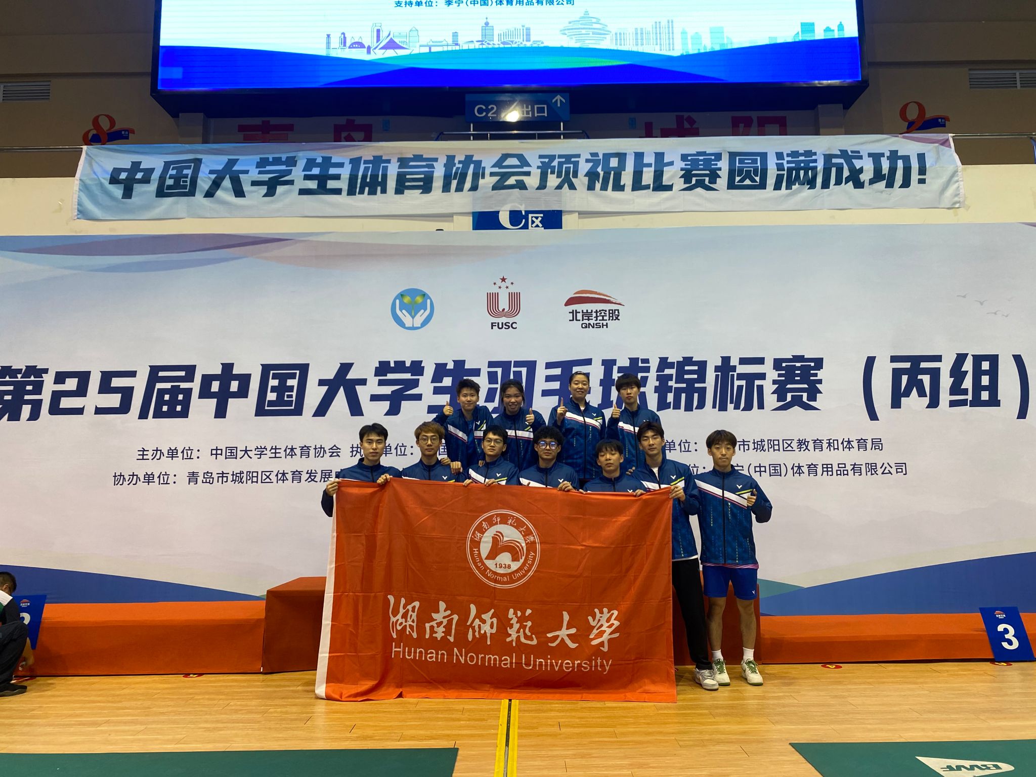 2023年5月25日第25届中国大学生羽毛球锦标赛(丙组)在青岛市城阳区体育馆举行,此次比赛吸引了来自47所知名高校的600余名高水平运动员参赛,包括了中国政法大学、北京大学、西北工业大学、同济大学、上海交通大学、北京交通大学等实力突出的代表队伍。我校派出了由郑澜教授领队、赵哲老师和常娟老师带领的13名运动员参加比赛。