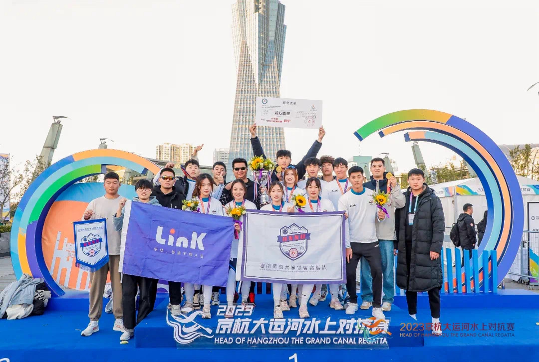 11月18日至19日,由中国赛艇协会、杭州市体育局、拱墅区人民政府、杭州市商旅集团(市运河集团)主办的2023年京杭大运河水上对抗赛中我校领客赛艇队在八人单桨有舵手水上5km追逐赛中以19:42.16的成绩获得名校组冠军。在八人单桨有舵手水上400米对抗赛中获得名校组第二名。
