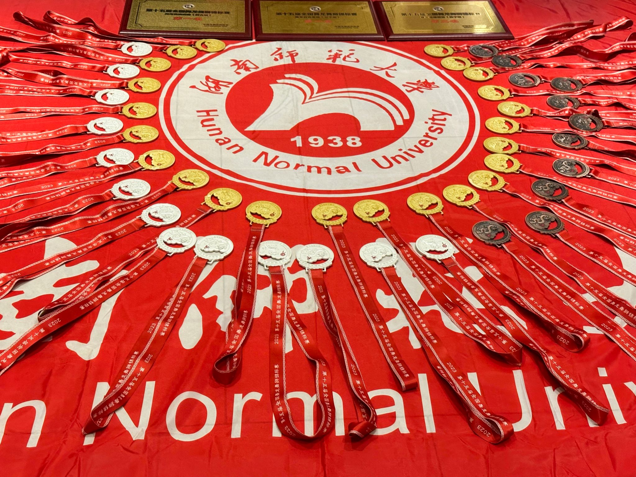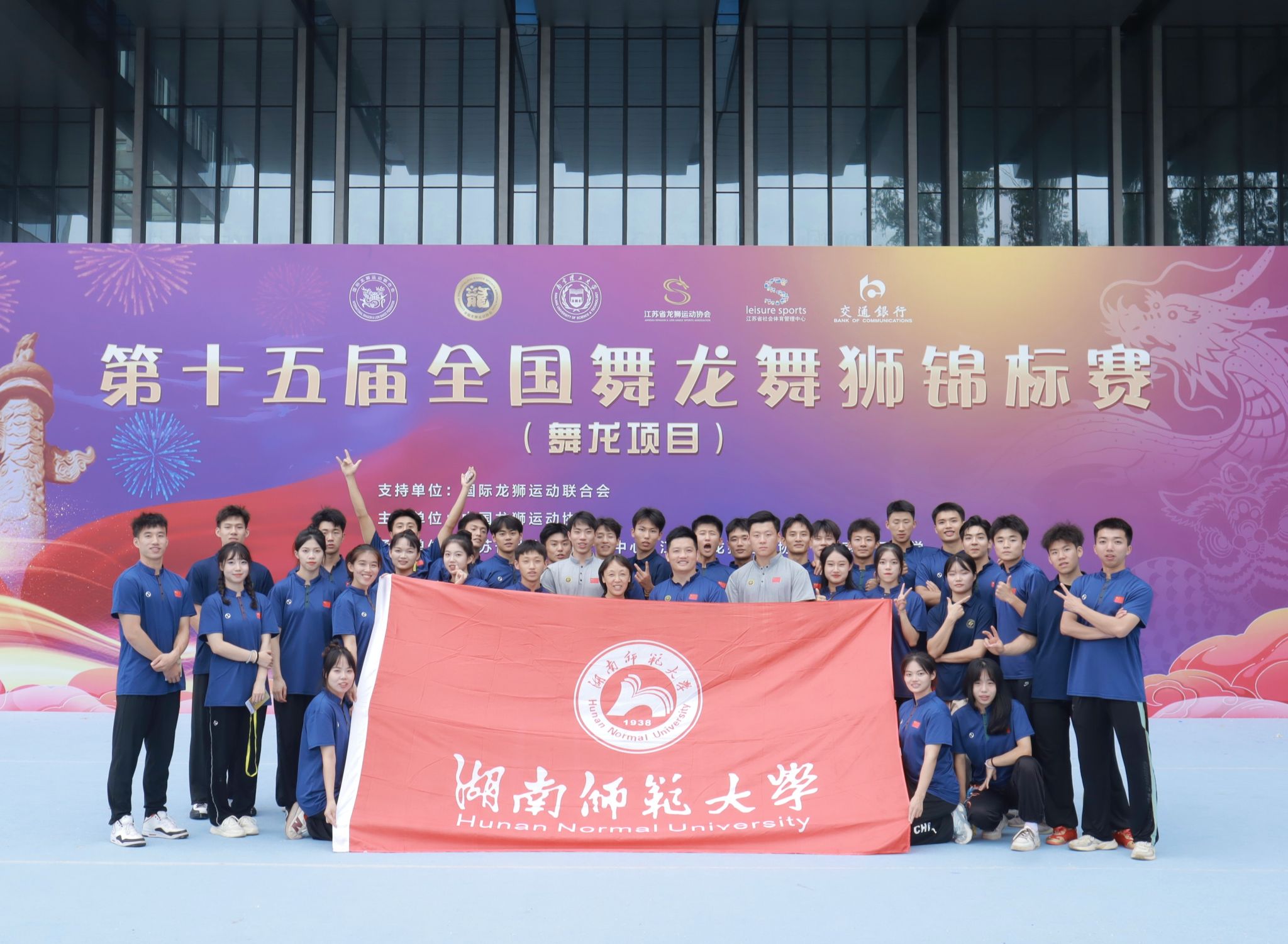 在此次比赛中,湖南师范大学龙狮团在领队刘花云副院长,教练员雷军蓉老师、江芳林老师以及马超群、李泽华和李西泽的带领下,共派出32名运动员参赛,比赛中大家铭记龙狮精神,团结协作,奋勇拼搏,最终斩获2金1银1铜,一个第四名,分别是舞龙自选套路(女子组)第一名、传统舞龙(混合组)第一名、竞速舞龙(男子组)第二名、舞龙规定套路(男子组)第三名、舞龙自选套路(男子组)第四名。