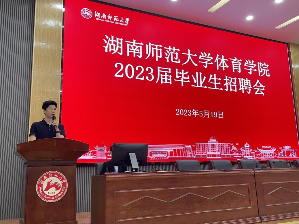 李皓首先诚挚地代表我院全体教职员工、全体学生欢迎此次招聘的用人单位做客湖南师范大学体育学院。随后表示通过本次招聘会,能够给我院学生提供一次就业机会;搭建这样一个平台,能促进校友、校企之间的合作,也是高校对于基层就业的调研。他表示应邀的用人单位都是具有体育情怀的、与我院有较厚的体育情谊的用人单位,我院学工办所有老师到场此次宣讲会也是为今后毕业生招聘打好基础。