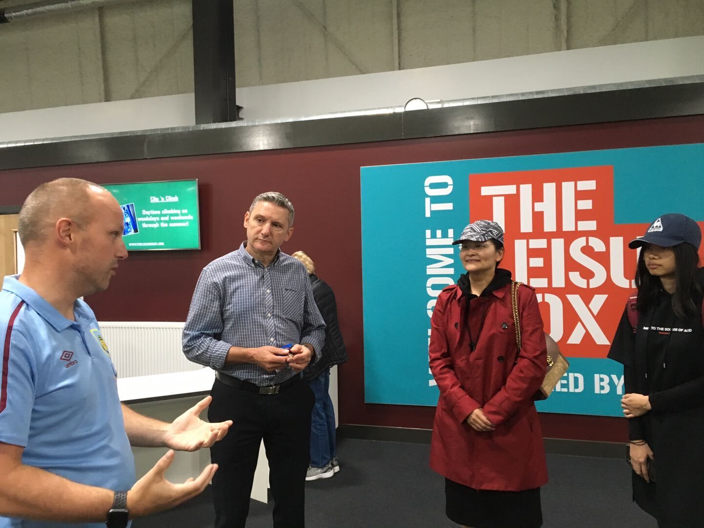 代表团在伯恩利俱乐部海外足球开发主管Paul Wozny(左二)陪同下考察赖舍博克斯社区运动中心