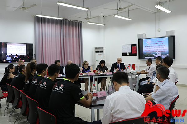 (供稿 校新闻网)8月27日上午,英国国际贸易部投资部长Graham Stuart及英国驻广州总领事馆相关负责人等来校,考察我校与英国中央兰开夏大学合作举办的体育教育中外合作办学项目,副校长周俊武在体育学院热情接待了客人。