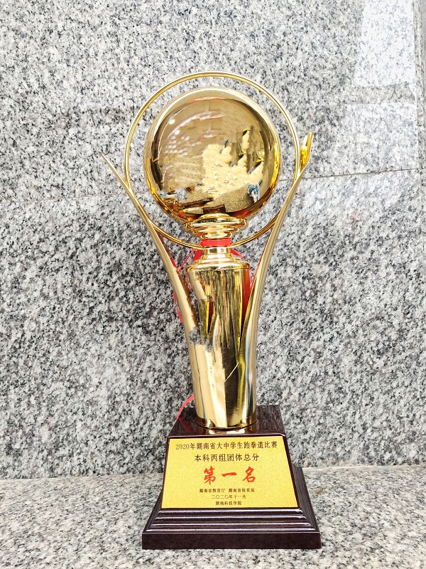 (通讯员 吴丹婷 程雪晶 符清连)近日,由省教育厅、省体育局主办的“2020年湖南省大中学生武术跆拳道比赛”在永州湖南科技学院体育馆举行。经过五天激烈角逐,我校体育学院代表队荣获7枚金牌、9枚银牌、9枚铜牌的好成绩,取得本科丙组团体总分第一名。