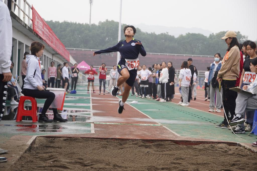 在径赛项目中,他们轻捷如燕,威猛如鹰,赢得了观众席上深深有劲的呐喊声和欢呼声,在振奋人心的100米项目中,他们用速度点燃激情,昔日的跑道在脚下幻化成为最美的彩虹。在扣人心弦的1500米项目中,笔直的跑道和稳健的足迹形成了一道美丽的风景线。在田赛的投掷项目中,他们霸气十足的一投,铁饼、标枪和铅球在空中画出了完美的弧线,完美的落地。在趣味运动项目中,他们更是龙腾虎跃,整个竞赛气氛激烈又不失轻松愉悦,最终在袋鼠跳和五十米迎面接力赛中双双夺冠。运动健儿们火一般的气势,展现出舍我其谁,当仁不让的体育精神,取得了一个个骄人的佳绩。赛场外,加油声、摇旗声、擂鼓声、每一声都宣扬了运动健儿们对前进的不懈追求。同时在场外研究生会在风雨长廊设立的集中点,为运动健儿们更好地驰骋赛场保驾护航,全心助力田径比赛。