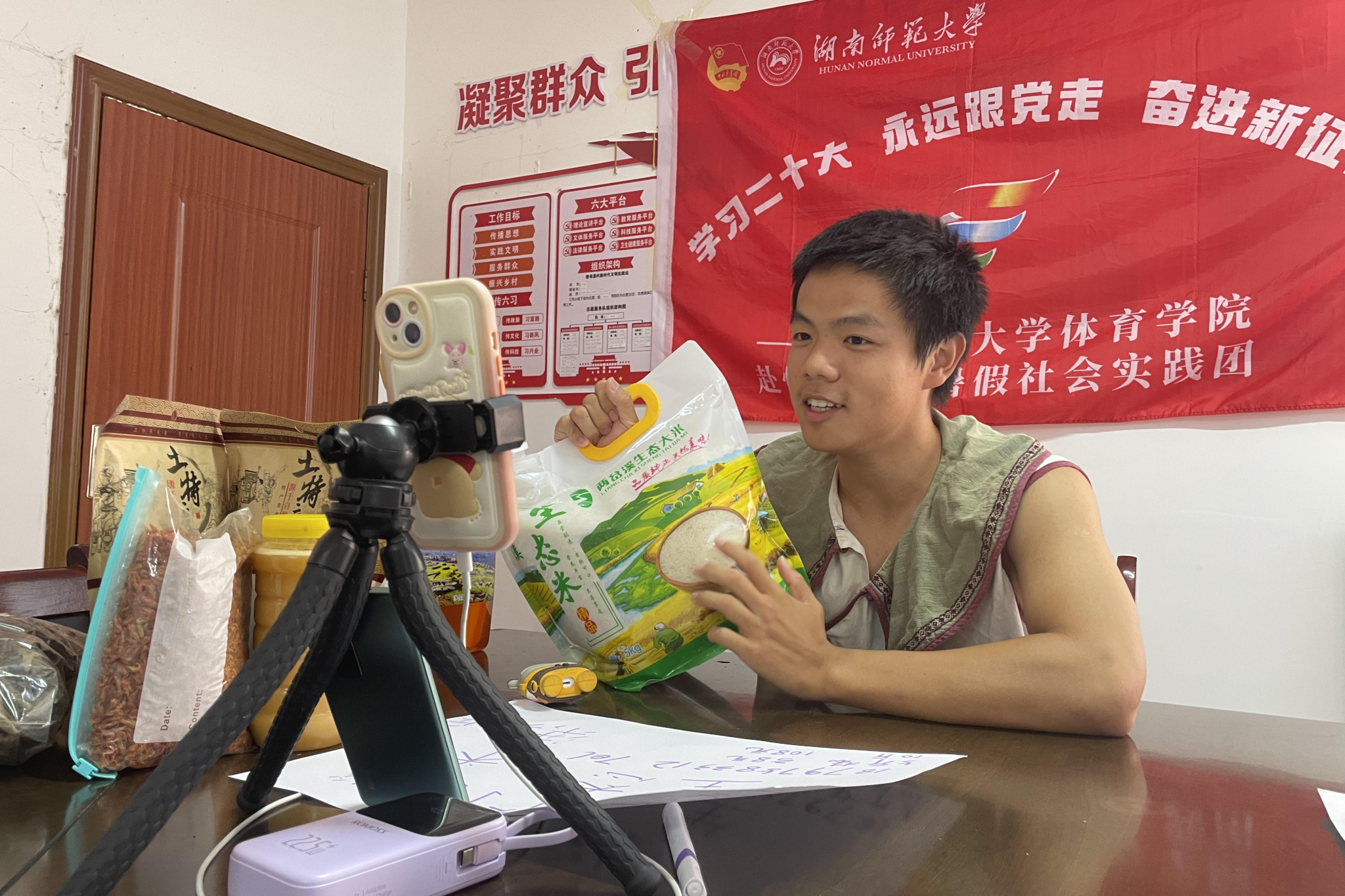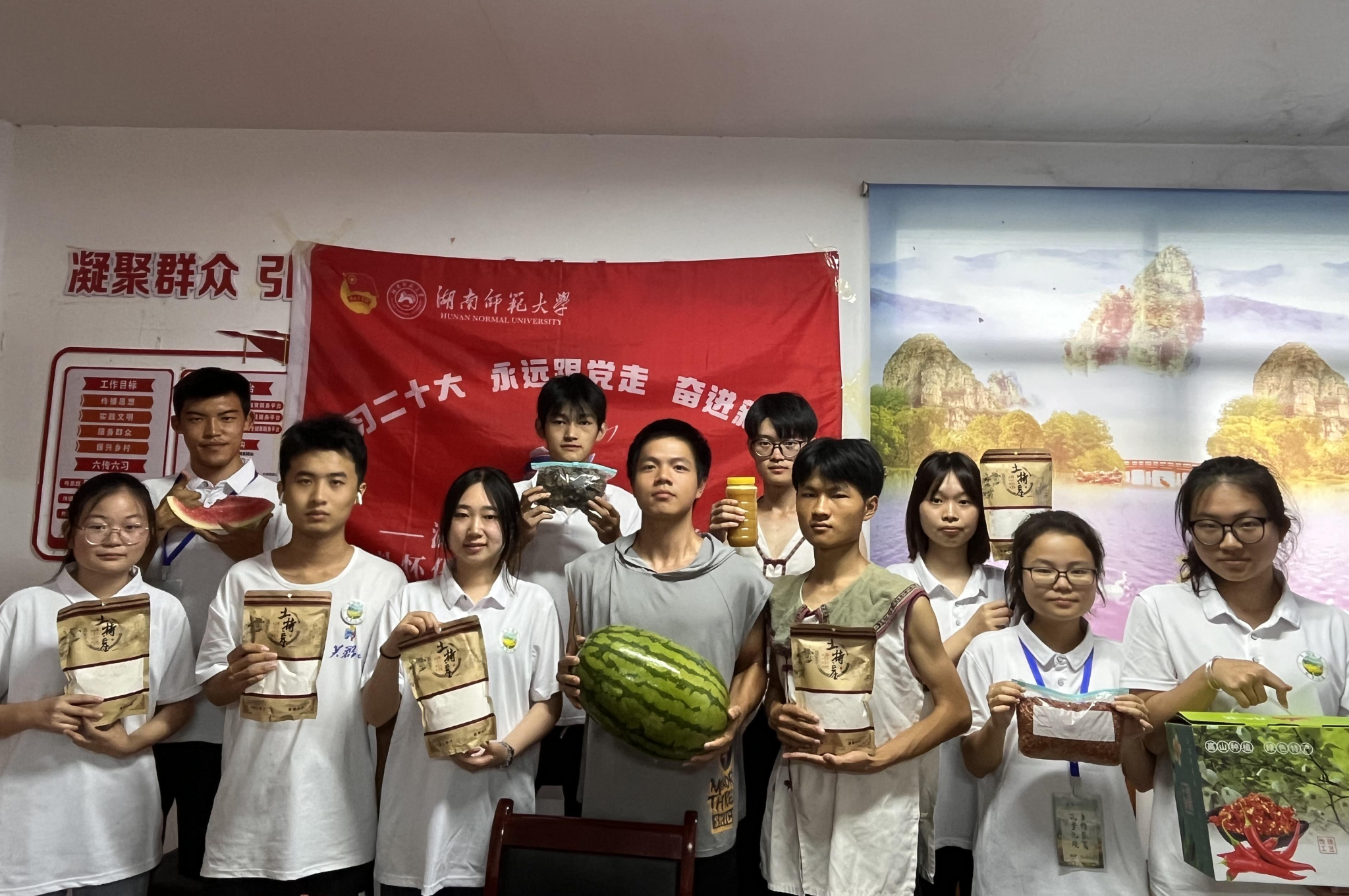 直播带货是以销促产最有力的方式之一。助农直播过程中,湖师大学子将理论学习与实践探索结合起来,积极认真,展现了师大青年应有的责任和担当,彰显了新时代大学生的使命与担当!眼里有光,心里有爱,脚下有路,作为当代年轻人,他们结合专业所长,在实践中锻炼自己,实实在在为群众解难题、送温暖,用青春力量助力乡村发展。