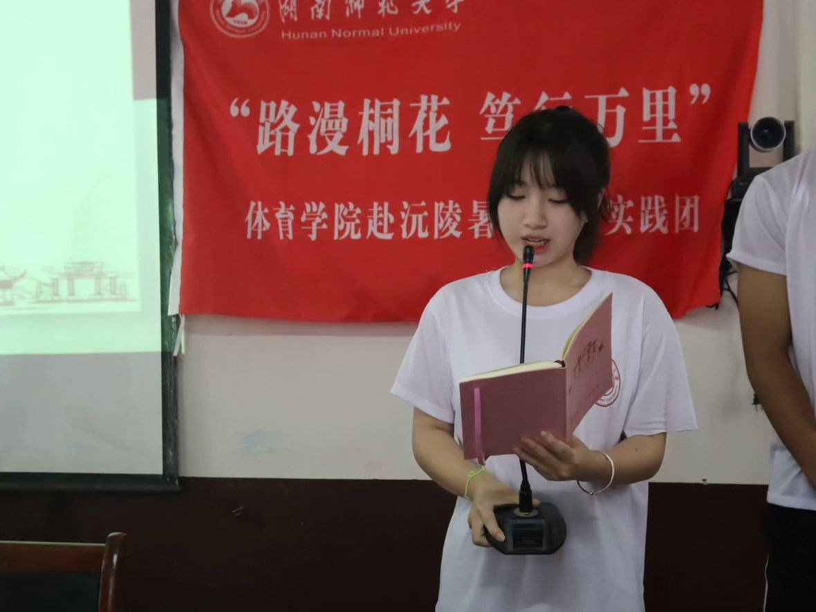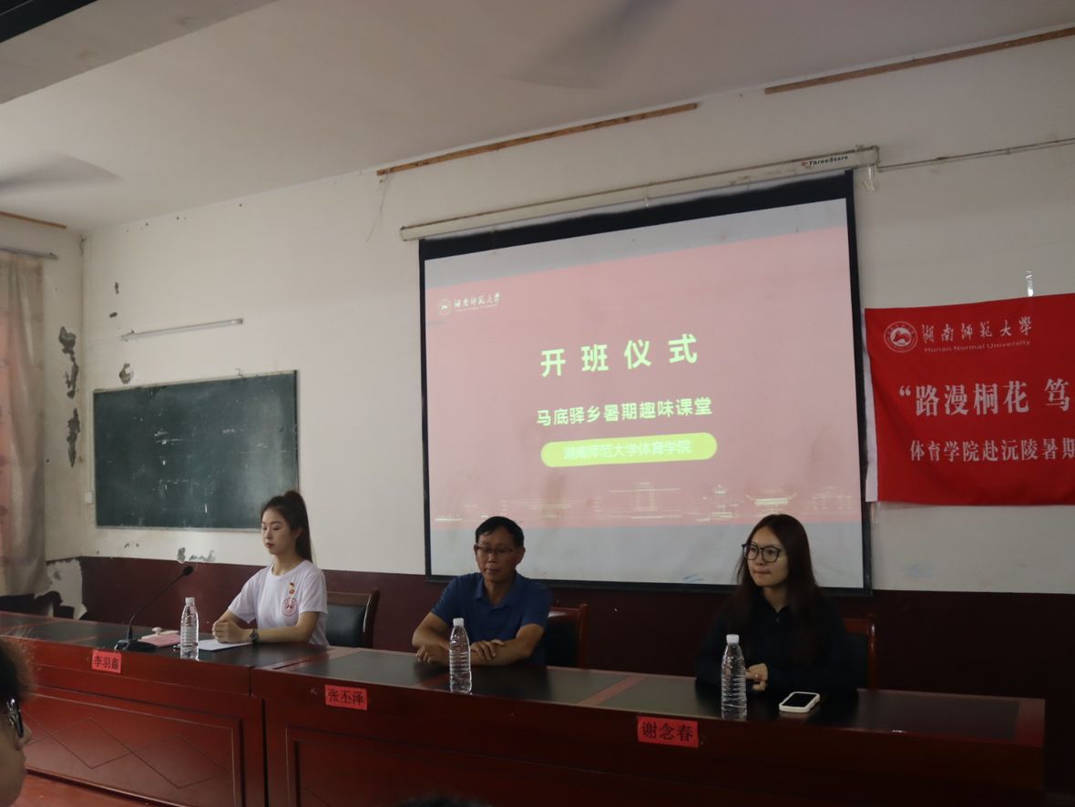 (通讯员:王璇,郑玉璞)2023年7月10日上午,湖南师范大学体育学院“路漫桐花,笃行万里”赴沅陵暑期社会实践团在马底驿乡九年一贯制学校多媒体教室举行暑期“三下乡”实践活动开班仪式。马底驿乡九年一贯制学校党支部副书记张丕泽、教研专干谢念春、湖南师范大学体育学院2022级辅导员李羽鑫出席此次开班仪式,实践团全体成员参加仪式,实践团副队长肖恩主持仪式。