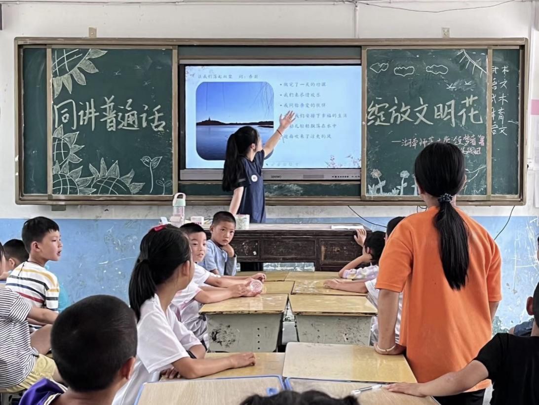 (通讯员:郭忠鑫 左晴 盛诗琦 张梓杨)7月10日,湖南师范大学体育学院“领梦者”暑期社会实践团为渣坪九年一贯制学校的学生编排了丰富多彩的课程,设计多学科融合的普通话课程体系。