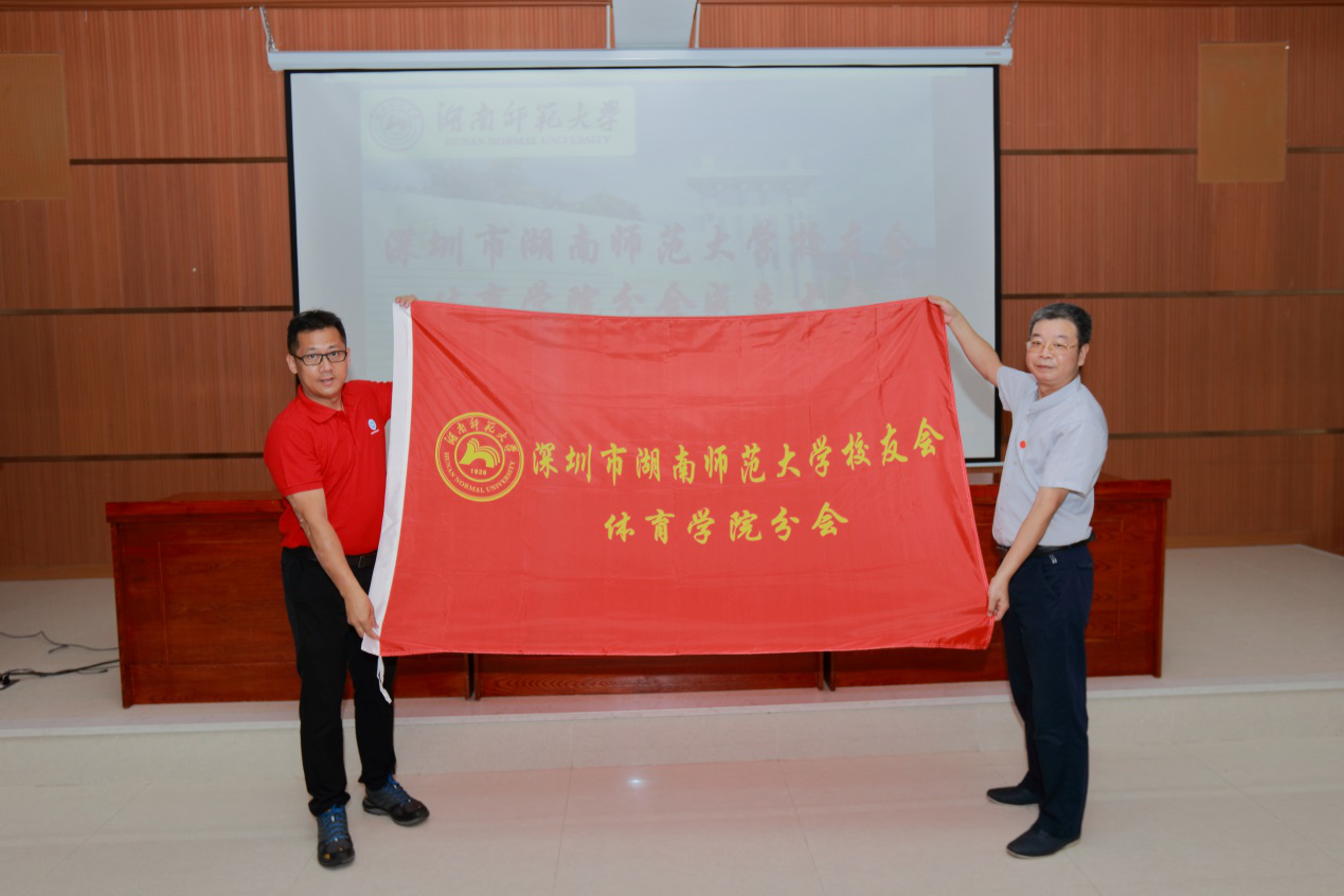 1994级校友蒋岱汇报了深圳校友分会筹备工作情况。深圳市校友会秘书长邹寿长宣读了《关于成立深圳市湖南师范大学校友会体育学院分会的批复》。