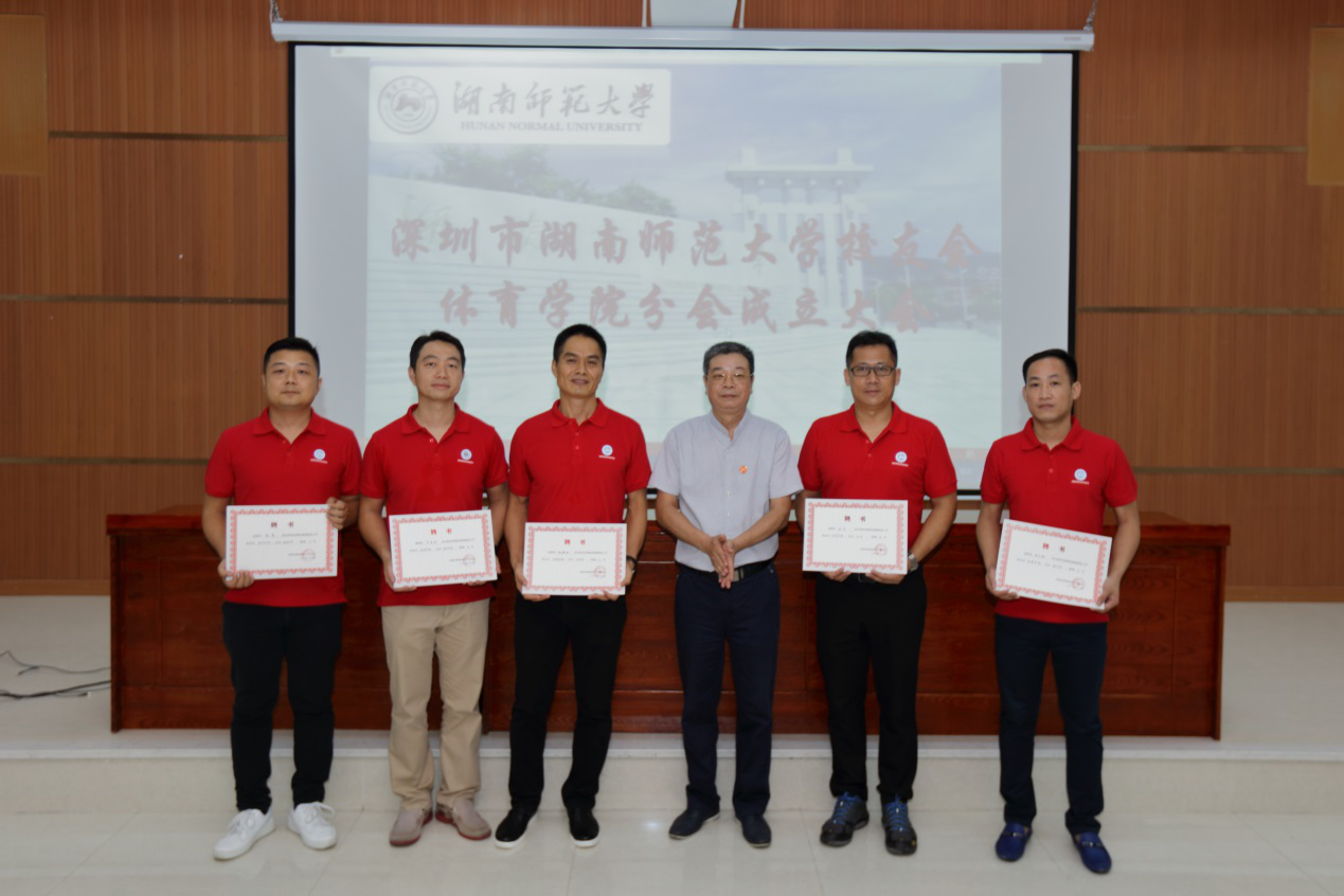 (供稿 校友会)7月14日,深圳市湖南师范大学校友会体育学院分会成立大会在深圳宝安职业学校举行。副校长周俊武、校友总会副秘书长李皓、深圳市校友会会长刘晓明、秘书长邹寿长、院党委书记李明辉、副书记李波等出席活动。