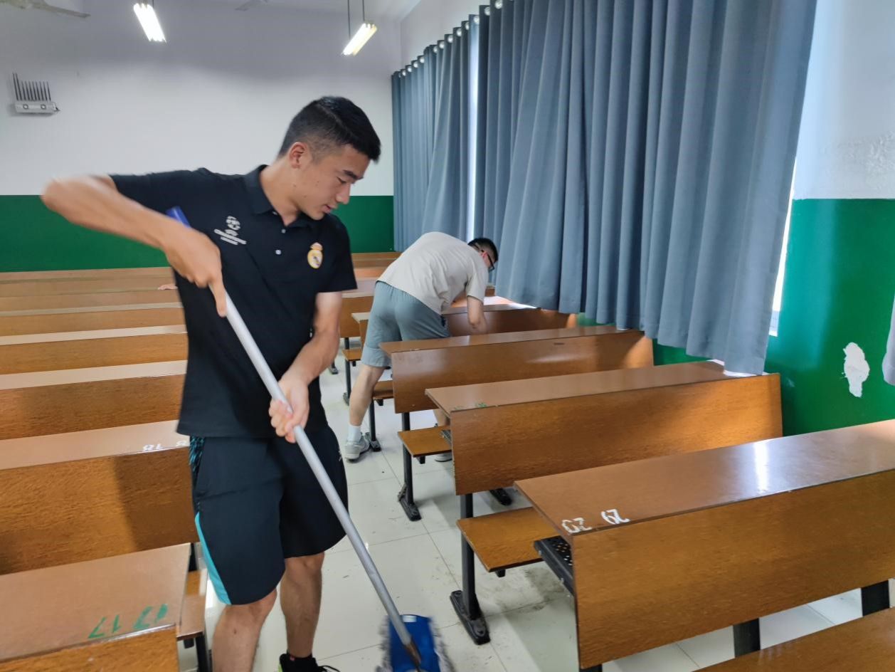 其他两组研究生学员在5月26日对体院教室进行了劳动清洁工作。同学们对教室里里外外进行大扫除,进行分工合作,对各个教室进行地面、墙面、桌面、板面清洁,大家齐心协力,将教室打扫的焕然一新,营造了良好的课堂学习环境。简单的劳动背后,是对积极加入党组织的行动决心。增强了入党积极分子的为民服务意识和劳动意识,丰富了培训内容,也为美化校园环境做出了贡献。