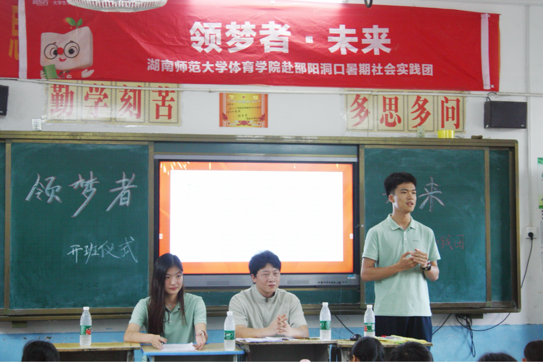(通讯员 李舒旸 谢雨芹 顾汉唐)2025年7月6日,湖南师范大学“领梦者•未来”暑期社会实践团队在渣坪乡九年一贯制学校举行了招生及开班仪式,以实际行动履行教育帮扶职责,为乡村教育事业续写新篇章。三下乡活动回应了习近平总书记关于广大青年担当时代责任的号召,大学生下乡支教是青年主动担当社会责任的生动诠释,彰显了新时代青年的使命担当,为实现中华民族伟大复兴贡献青春力量。
