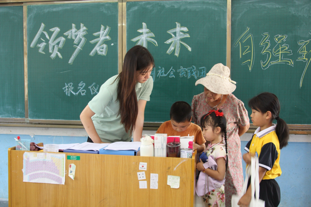 图为实践团队长在帮助学生填写报名信息梁艺萱供图