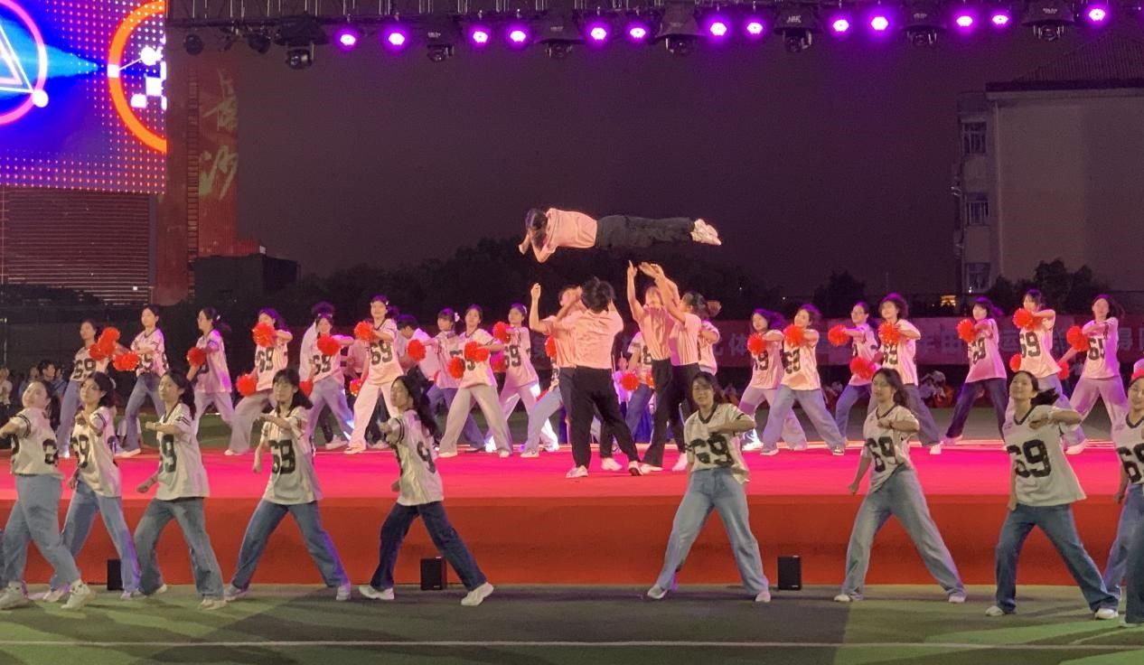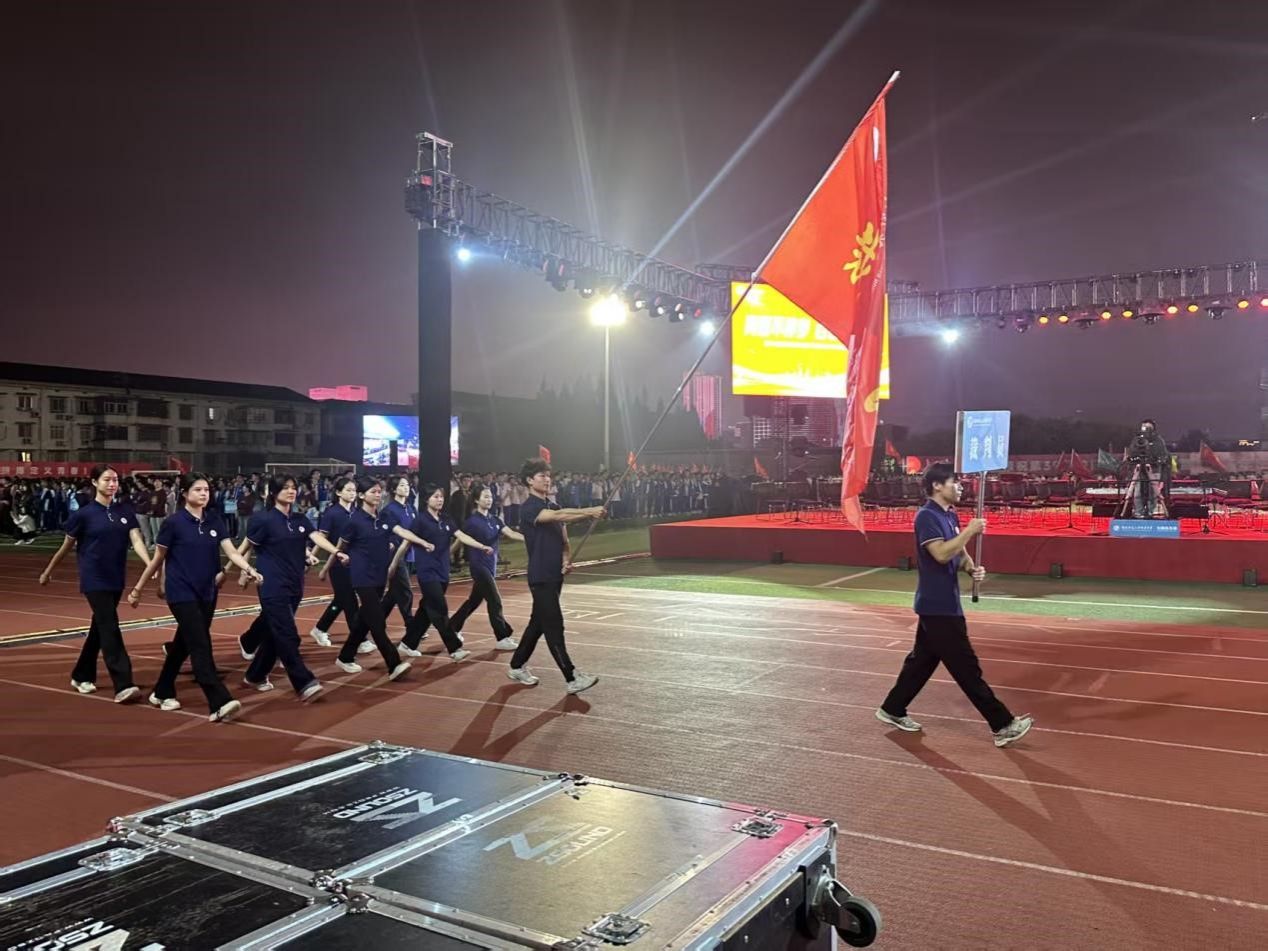 10月16日晚的开幕式上,"云旌九队"实习教师团队带来了精彩纷呈的展示。由实习教师组成的裁判员方阵以整齐的步伐、饱满的精神走过主席台,展现出体育人特有的专业气质。更令人瞩目的是,实习教师们还奉献了融合校本模块课等元素的特色体育表演,专业的动作、精湛的技艺赢得了全场师生的热烈掌声,成为开幕式上一大亮点。