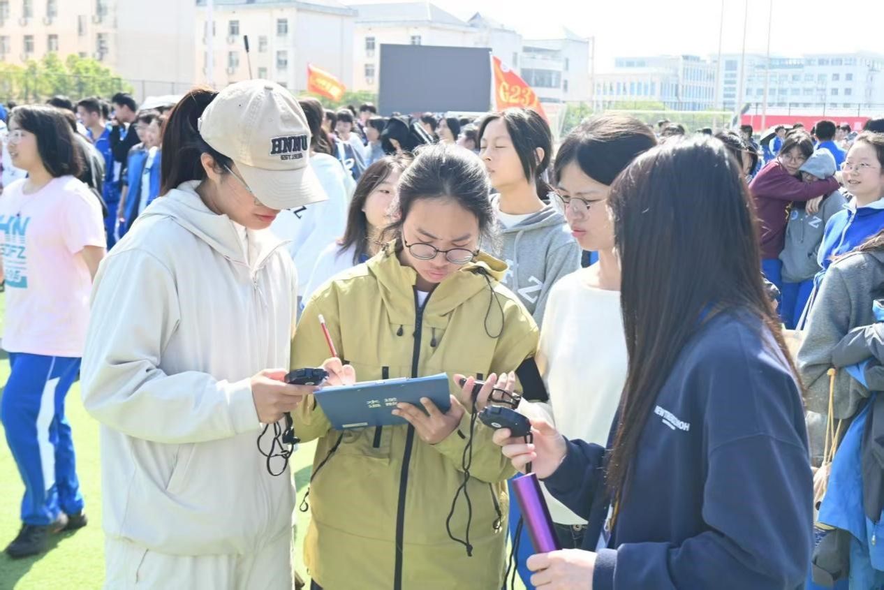 在比赛过程中,实习教师们分工明确、各司其职,展现出高度的专业性。除裁判组教师负责田赛、径赛的现场执裁外,检录组教师严格核对运动员信息,确保比赛有序进行;统分组教师精准统计比赛成绩,保障赛事数据的准确无误。各岗位教师密切配合,以严谨的态度和专业的素养,确保了各项比赛的公平、公正、高效进行。